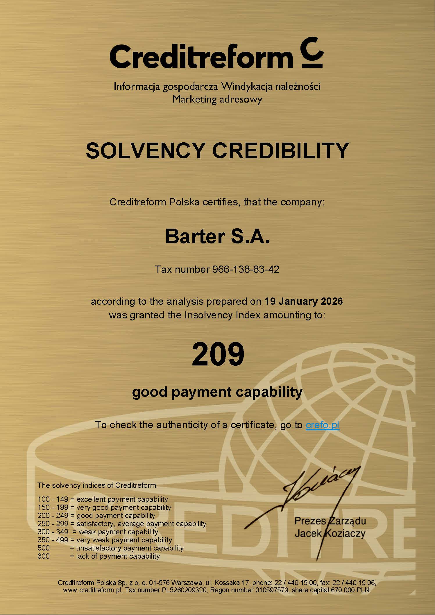 BARTER S.A. is a company with 100% Polish capital, dynamically developing in the energy sector. The company has been operating in the industry since 1999.