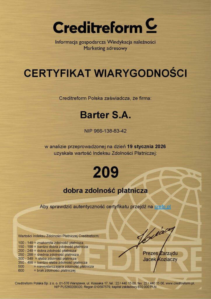 BARTER S.A. to stabilny, wciąż rozwijający się partner w biznesie.